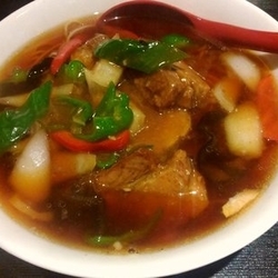 スープはちょっと尖った塩味を野菜でカドを取って丸めて、で、化調で正に調味。