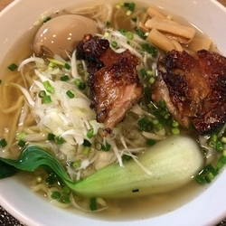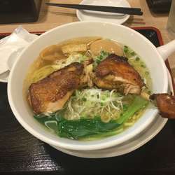 ベースは塩ラーメン、見た通りでっかい・しっかりとした味付けのもも鶏、割るととろ〜り半熟の煮卵が1個、青梗菜、メンマ、白髪ネギに別皿で摩り下ろし生姜。中太縮れ麺は啜り心地良く、塩ラーメンが単品500... 続きを見る