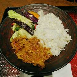 カレーライスにはモロヘイヤのスープが付属。