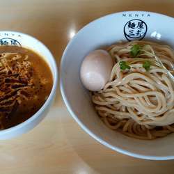 ずっと気になっていた三井さんに訪問🚗メニューもつけ麺は豚魚、坦々、カレーもあり、汁なしやラーメンも気になるメニューが豊富です✨坦々系も気になるとこですが、初訪問のため看板メニューのつけ麺を注文✋麺はしっこり氷水でしめられた美味しいツルモチ麺🍜豚骨魚介のつけ汁は程よい粘度で、麺を食べ終えてスープ割りを充分に楽しめる適量です⭕️日曜のランチタイム、ファミリー客が多く、地元に愛される... 続きを見る