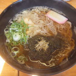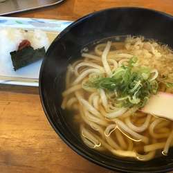 券売機で”かけうどん”150円と”おにぎり”50円の食券を購入します。おにぎりは梅を選択しました。