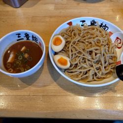 注文はつけ麺の味玉付き。麺は増量無料だったので特盛にしてみました。