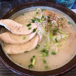 19/5/21訪問。過去分ですが、移転しているので、足跡を残させていただきます。焦がし醤油(750円)を。スープは、真っ黒なビジュアルだが、醤油感はそこまで強くない。焙煎感が仄かに香る。麺は、プリプリのちぢれ太麺。具は、小松菜・刻み玉ネギ・穂先メンマ・鶏チャーシュー。デフォルトで一味使用。鶏チャーシューが変わった味付けで美味かった。ちなみに5/26で移転閉店のようです。
