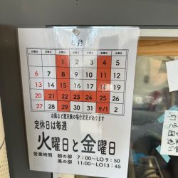 | 営業時間 | 7:00〜10:00、11:30〜15:00 |