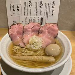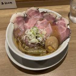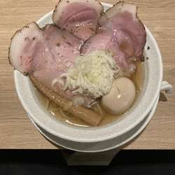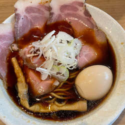 少しして写真の一杯が配膳されました。漆黒のスープの上はチャーシューで覆われており、麺は見えま... 続きを見る