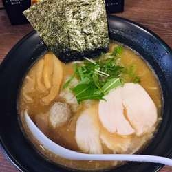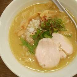 鶏全開の塩白湯で粘度は高め。クリーミーで塩気は気持ち控えめ。飲みやすい。