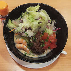 期間限定フェアの「知る人ぞ知る ご当地グルメ旅フェア」の一品。別添えで花椒が付いてきますが、すでに花椒が効いているので、追加という感じ。麺の大盛りは無いので、20円お得なご飯セットもありますが、ミニ深川めし323円を追加注文しました。到着してみると、麺量200gはあるような量と大量のそぼろ肉だったので、ご飯類は必要ありませんでした。温泉卵を崩して思いっきりかき混ぜても濃いめの味... 続きを見る