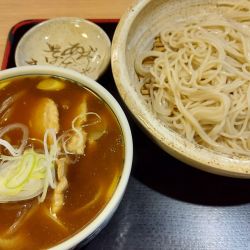つけ汁のカレーはお蕎麦屋さんのカレーでとても熱くて、