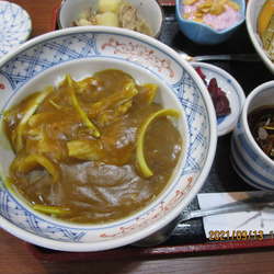 セットですので、カレー丼と小鉢にデザートが付きます、