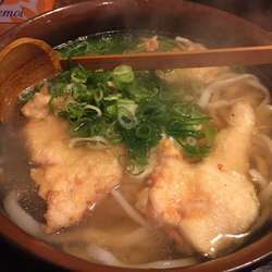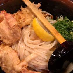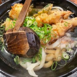 大阪駅前第2ビル「手打ち饂飩にしき」の「天ぷらうどん」、エビでかくて嬉しい。