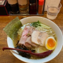 | メニュー | メニューの写真を見る 中華そば(醤油・塩・煮干し) 750円 |