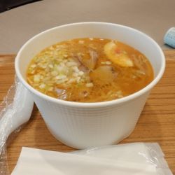スープは、如何にも濃厚そうな色合いに茶濁。粘度はあまり感じられない。