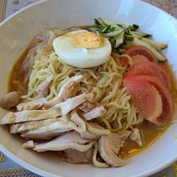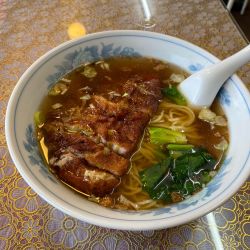 46分に着丼しました。トッピングは、排骨、青菜、小口切りネギでした。