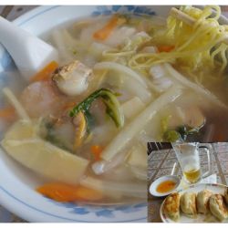 14時34分に訪問、37分にオーダーしました。卓上には醤油、酢、ラー油、胡椒が置いてありました。ランチタイムを外れていたので、店内には先客が一人だけでした。