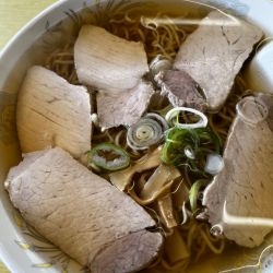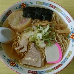 スープは、油分なくすっきりとした味わい。都会のラーメンに慣れてしまっていると、やや薄味に感じてしまう。卓上の胡椒がよくマッチする。