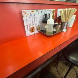 店内は沢山の芸能人の色紙が飾られた年季の入った、今日現在厨房向きカウンター3席と4人掛けテーブル席が4卓ありお水は出して頂きました(お手洗いあり)。