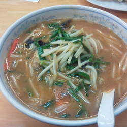 チェーン店を中心にタンメン味比べでもしようかな、と閑人ゆえの発想に基づき早速地元で地元発祥のこちらからスタート。野菜がこちらでは240グラム、柔らかな塩の味わいは沖縄の塩マース?使用の由か。麺量が結構ありますね。餃子セットがお得のようですが単品にて満足。