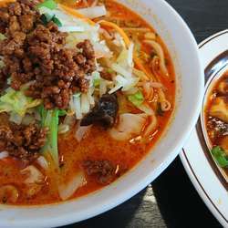 中華スープに芝麻醤がコクを与え、辣油や香辛料で味を整える一般的な担々のスープ。肉味噌から甘味が移り、辛さは一辺倒にならず、五香粉、山椒、陳皮等も使... 続きを見る