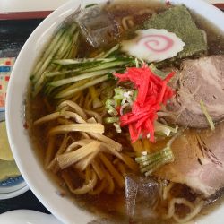 竜樹山・経塚山を妻と周回してみたらコシアブラがすごいなあ、ってかほんの少し遅かったか。下りて川西町のラーメンが食べたいもんで、ここに来た。中途半端な時間なのに開いているのはうれしい。なんかモダンな店名なので新しいのかと思ったら、案外老舗の空気を醸している。
