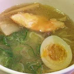 スープは熱々で、半熟卵もちゃんと暖かくなっている。