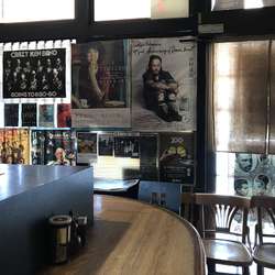 店内は昔ながらのお店といった雰囲気の中、音楽関係のポスターがたくさん貼ってありました。少し薄暗い感じ。