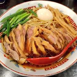 麺は表層の溶け出しと芯の硬さも感じられる最高の茹で具合、ブタも大きく柔らかく文句なしに美味い。