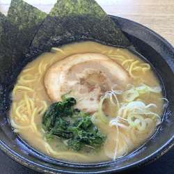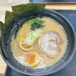 お店で炊き出したスープではなく、業務用のはずですが、しっかりとした旨味を感じ、味がしっかりついているのが家系らしさを感じます。麺は中太で家系のものとは少し違いますが、スープによく合っています。チャーシューはよく味がついていておいしかったです。