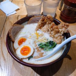 ・唐揚げがボリューミーでクリーミースープ吸ってたまらないジャンクさ。