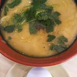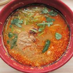 回転ずしやだがラーメンメニューがあるというので訪問。席のタッチパネルで、標記をセレクト。さらさらした粘度の低いスープで、ゴマ風味はそれなりにあり、辛さはピリ辛の1段上程度。奥に感じるわりとはっきりした甘みが特徴的で、なかなかおいしい。