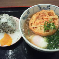 明示的な表記はないがおそらく宇部丸うどんで、細く丸い麺は柔らかく肉の旨味とつゆのコクが相まって美味しい一杯でした。