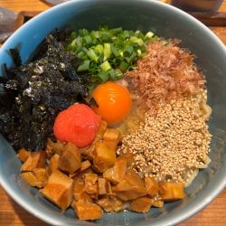 今回は夏季限定の特製冷やしジュレダレぶっかけまぜそばを注文。食べ終わったらジューシーを入れて食べると良いと情報もあったので一緒に注文。