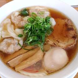 お腹が空きすぎていたので特盛(2玉)をいただく。大きなワンタン、メンマ、チャーシュー、刻みネギ、ナルトのビジュアル。キラリと適度な脂の玉が見られるスープからいただく。口当たりはさっぱりとしていて、フワーッと醤油の香ばしい香りと風味が広がる、そこに鶏ガラと思われる旨味が合わさる、丁度良い塩加減で後味にさっぱりと酸味も感じる清んだ旨味が残る。麺は中細麺の縮れ麺でコシのある食感だが、... 続きを見る