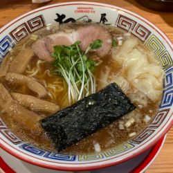 程よく脂の浮いた清湯スープは、動物系メインのあっさり淡麗スープ。塩味強めでチュルチュルワンタンとの相性も良好😁