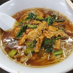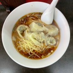 具は、ネギ・ワンタン6個とシンプル。ワンタンは餡がずっしりとしたタイプで美味しい。