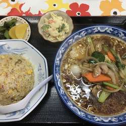 麺メニューはラーメン、みそラーメンなど多数ありランチセットメニューのラーメン、餃子を注文