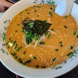個人的に細麺は苦手なのですが、こちらは伸びにくくちゃんぽんにもいけます。魚介は入っていないようですが、豚肉とタップリの野菜(もやし・キャベツ・玉ねぎ・人参・ピーマン・きくらげ)でボリュームは満点です。何よりスープが塩分控えめなのに旨味タップリで秀逸です。