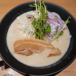 姫路駅直結(ほぼ駅ナカ)のビエラ姫路にあるお店です。店頭の自動販売機で購入した食券は、塩豚骨(中太麺):780円&とり唐揚げライス(小)セット:450円。案内されたテーブル席で着丼前に、無料高菜バーで漬物3種を小皿に盛りスタンバイ。そして約7分ほどでの着丼です。濃厚な塩豚骨スープに中太麺がGoodな一品です。スープが旨い!そして大判海苔がトッピングされ、家系に近い感じのラーメン... 続きを見る