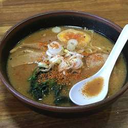 店長お勧めの表題を注文✈️スープは辛さはほぼなく、甘みもある味噌スープ🥣 麺は柔らか茹で加減の平打ち中太麺🍜斬新なカルビは甘辛な味噌スープと麺との相性もよいですね✨スライスされたフライドガーリックも良い味をだしてます🧄コスパもよく、ファミリーやビジネスマンに人気のお店でした🌈