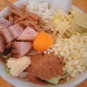 結果具は、ゴロチャー、メンマ、刻みニンニク、刻み玉葱、チーズ、茹でモヤシキャベ、