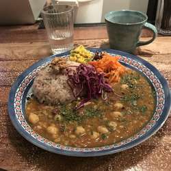 | メニュー | ポークビンダル1200円 野菜と豆のカレー 1200円 |