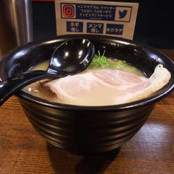 同僚オススメのこちらへ初訪。迷わず表題を注文。煮干し感あるスープは粘度高めで旨い。もっと濃くても良いと感じましたが、これくらいが丁度良い。太麺との相性も良く、極太メンマも多めで嬉しい。アクセントの玉ねぎは完璧。チャーシューはバラとレアを選べますが、バラを頼んで正解。楽しんでる間に完飲完食。大変美味しくいただきました。ごちそうさまでした。