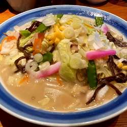 濃厚な味噌スープがストレート太麺によくからみます。サイコロ状のチャーシュー・きぬさや・挽肉・もやし・メンマに山盛りのねぎをトッピングでボリュームも満点です。