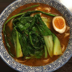 過去分ですが、レビューが0だったので投稿致します。麻辣刀削麵(680円)を。スープは、醤油ベースで、くせなく食べやすい。辛さはなかなかの麻辣味で、オーダー時、店員に「辛いですよ」と念を押されました。麺は、所謂、刀削麺風で、期待はずれ。麺量は、なかなか。具は、ほうれん草・チンゲンサイ・味玉半身。肉類不使用は寂しいです。
