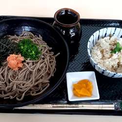 幅広でコシがつよく食感の良い蕎麦に甘いつゆが相性抜群です。しじみご飯も美味しかったです。