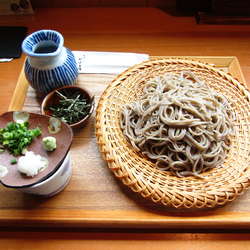 とてもきれいで清潔感のある店舗で観光客に人気の高いお店です。細めで色の濃い蕎麦に辛口のつゆがよく合います。薬味はねぎ・わさび・大根おろしでした。