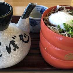 あげ玉・山いも・玉子をを格段にのせた、お店の一番人気の割子そば。さっぱりしたつゆに薬味も充実していて色々な味が楽しめます。