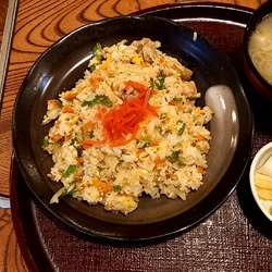 塩味の濃い目の味付けのしっとりチャーハンは鶏肉をたっぷり使用してありとても美味しかったです。あら汁も本格的で605円はコスパも最高ですね。