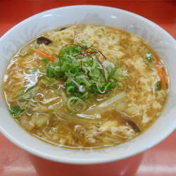 全員が女性スタッフで営業されているお店です。マイルドな酸味と辛味ですが、食べ進めてるうちに口中がヒリヒリしてきました。野菜たっぷりでヘルシーな一杯。