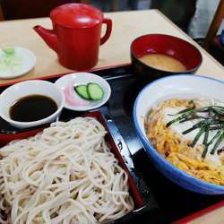 カツ丼,天丼,親子丼,玉子丼の4種から選べる丼ものと蕎麦のセットメニューは600円。