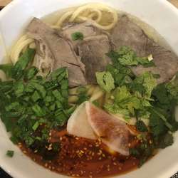 | 備考 | 蘭州牛肉麺の店。 麺は以下の9種類。麺は店内で製造。 (極細麺、細麺、中太麺、太麺、極太麺、三角麺、ニラの葉麺、細帯麺、スーパー太帯麺) 現時点では無料かき氷のサービスあり。 |